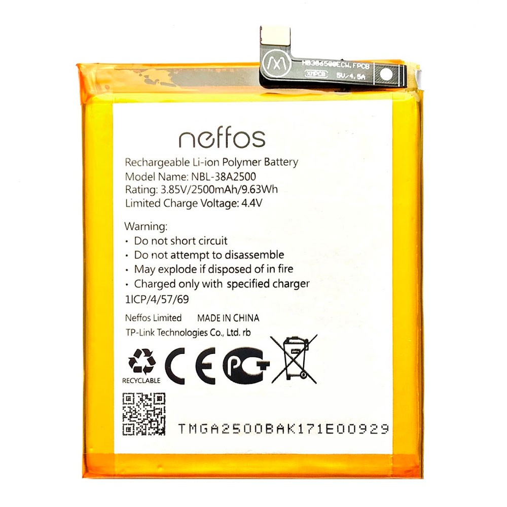 Батарея TP-Link Neffos NBL-38A2500 для смартфона TP-Link Neffos X1 Lite TP904 предохранит аппарат от неожиданной разрядки в самый нежелательный момент.